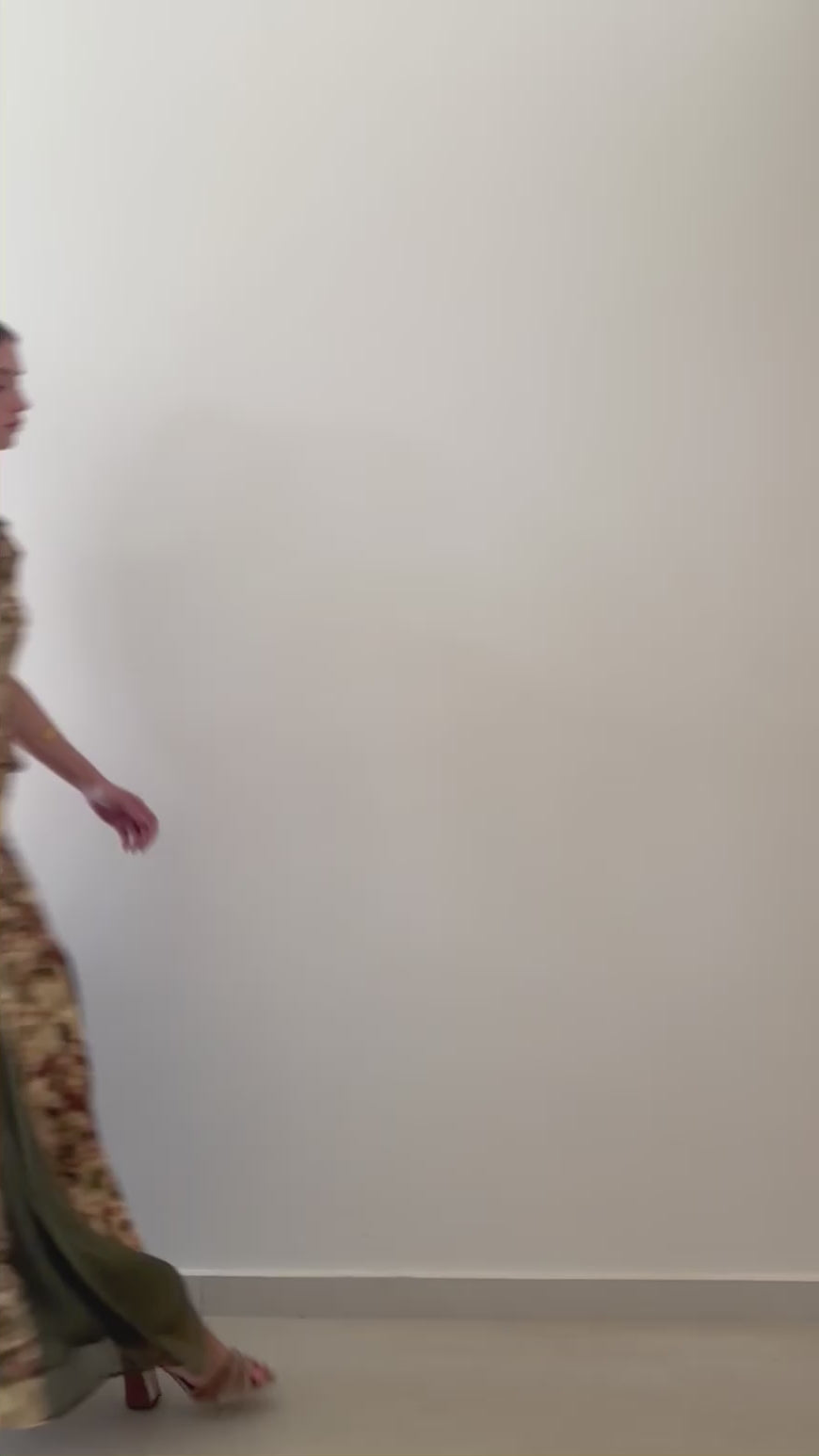 El set Danae destaca por su estampado floral en tonos tierra y verdes, que aporta un aire sofisticado y muy especial. El top de escote halter, además de ser multi posición, es reversible, permitiendo llevarlo también en tono verde liso. La falda combina el estampado con godets dobles en verde que aportan movimiento y ligereza, realzando la silueta con un efecto fluido y femenino. La modelo mide 1,70cm y lleva la talla S.