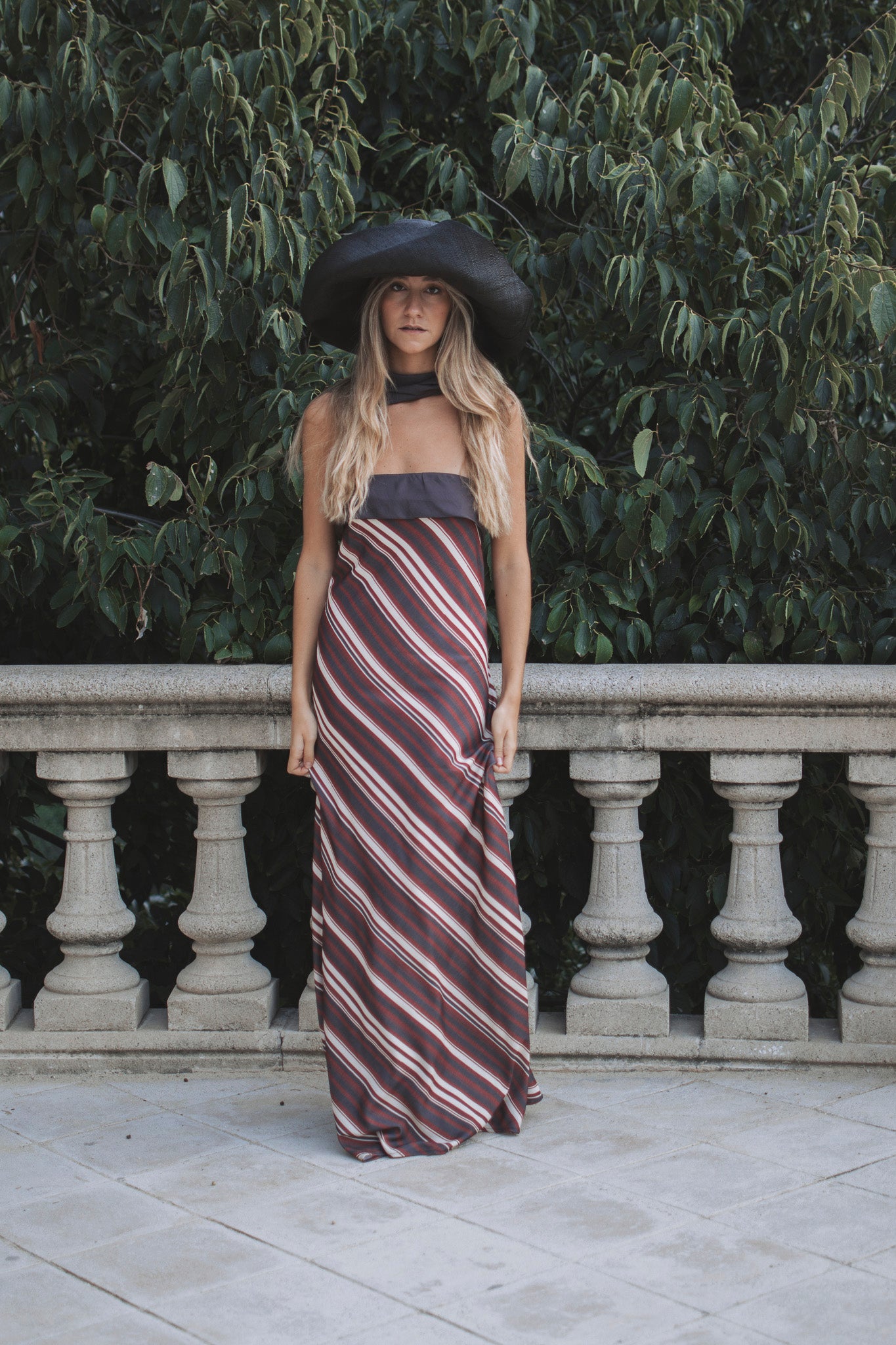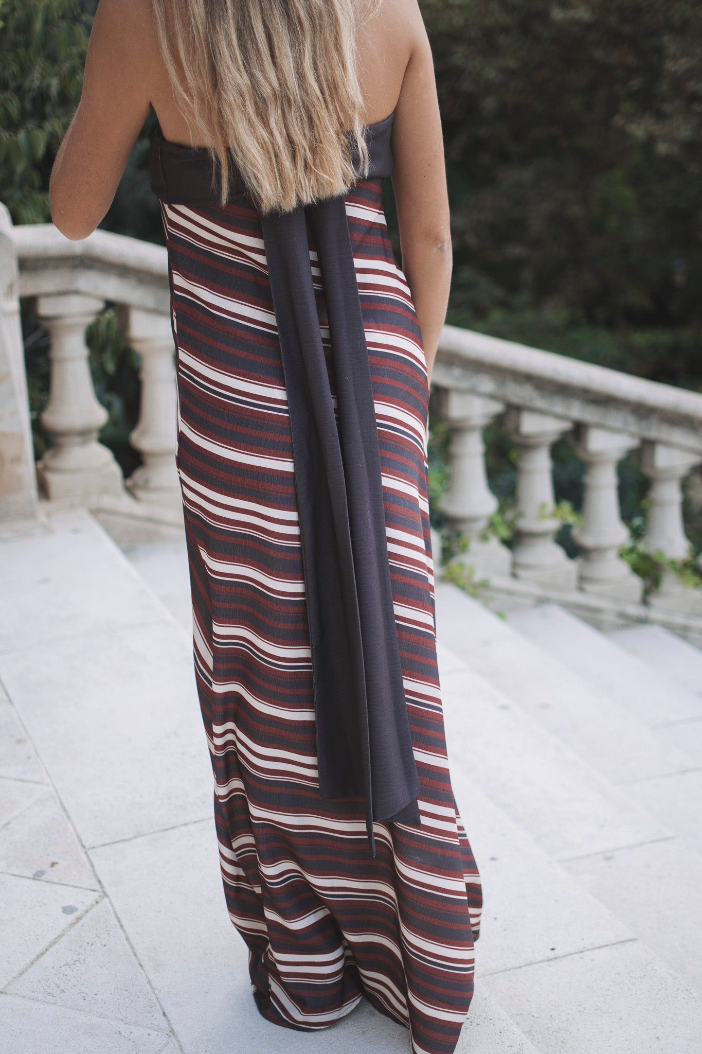 El vestido Inés Brown está confeccionado en un tejido fluido y sin tirantes, su estampado a rayas cortado al bies en tonos marrones y granates consigue el equilibrio perfecto entre dulzura y elegancia. Presenta dos tiras en la parte de atrás ideales para llevarlas sueltas, en lazada o como collar. Su silueta alargada estiliza la figura y lo convierte en una opción ideal para bodas atemporales con un punto sofisticado y original. Un diseño pensado para invitadas que buscan destacar con un look tan favorecedor como especial.